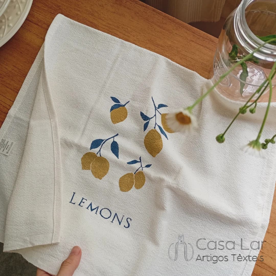 Os Panos de Prato Estampados da Casa Lar são cuidadosamente pintados à mão com padrões exclusivos desenvolvidos aqui!
