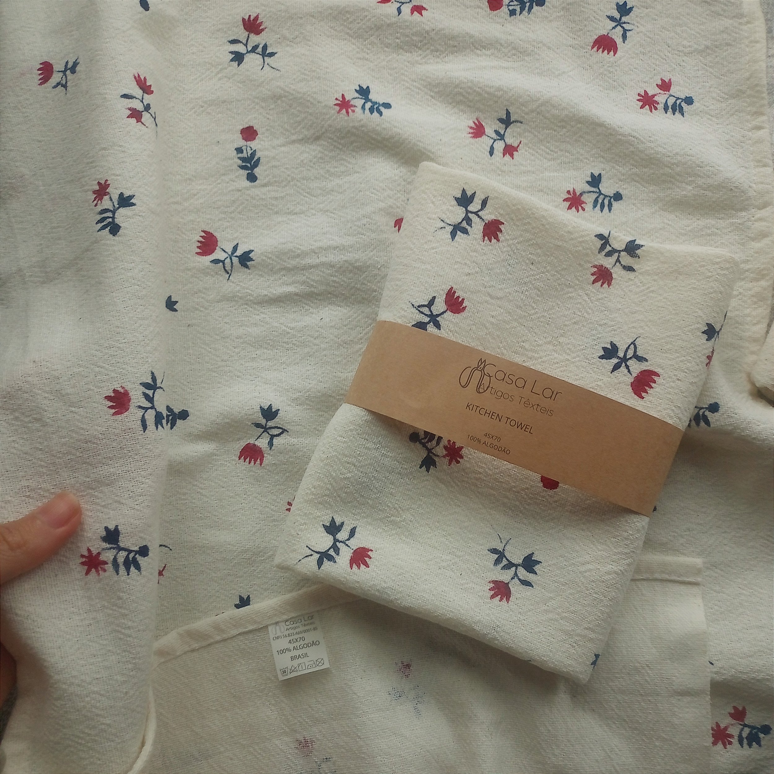 Os Panos de Prato Estampados da Casa Lar são cuidadosamente pintados à mão com padrões exclusivos desenvolvidos aqui!