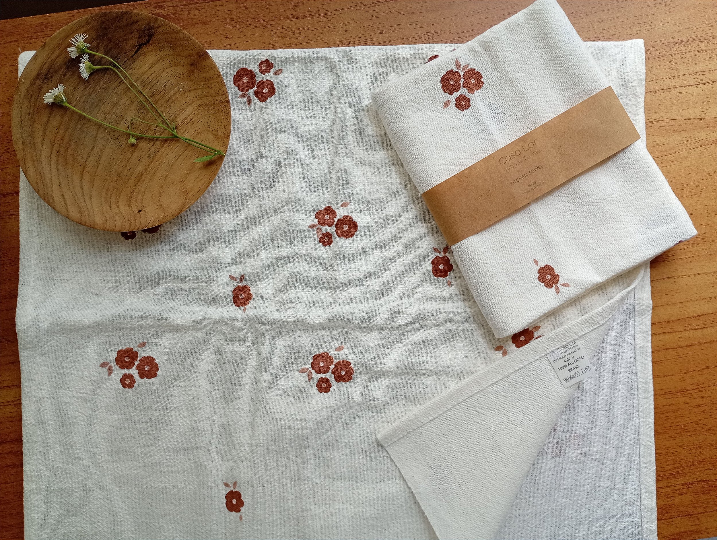 Os Panos de Prato Estampados da Casa Lar são cuidadosamente pintados à mão com padrões exclusivos desenvolvidos aqui!