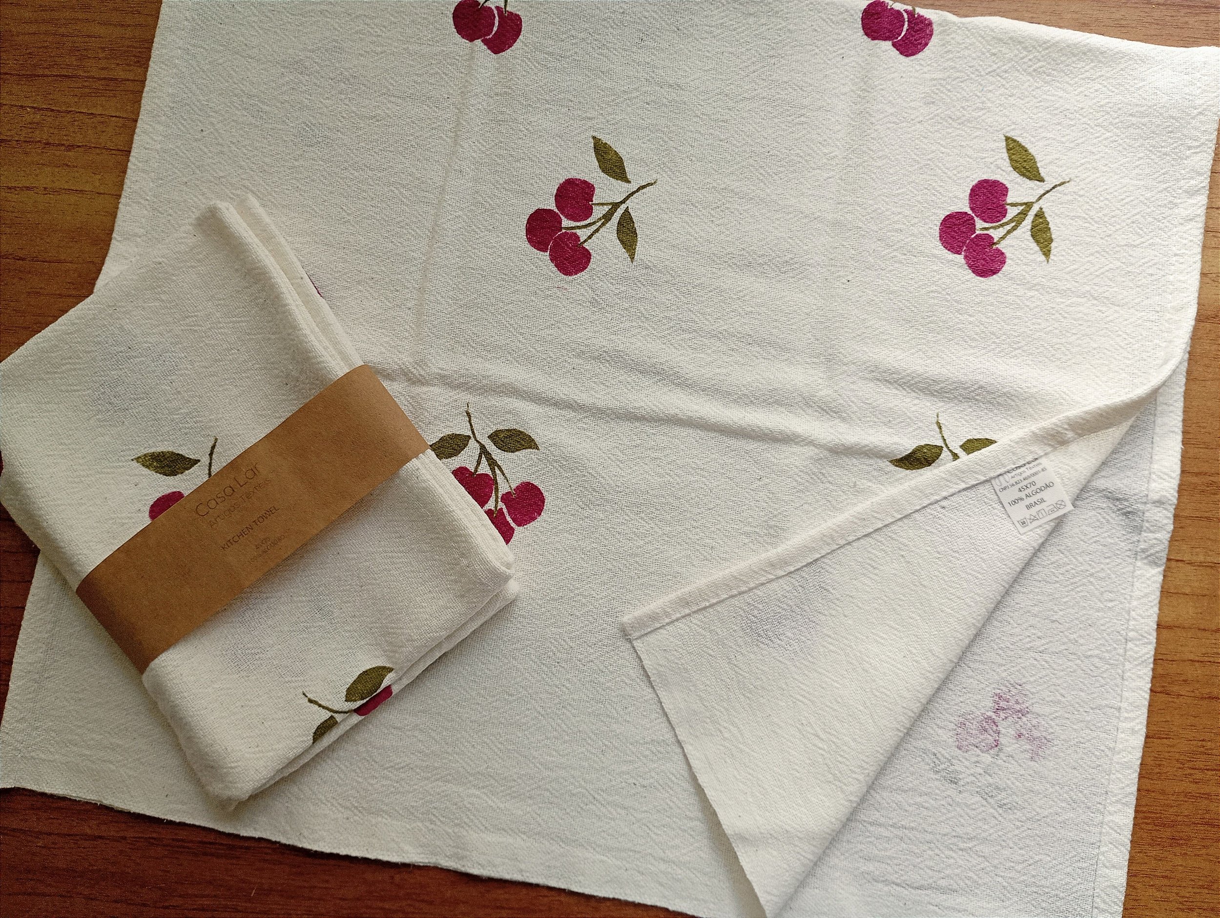 Os Panos de Prato Estampados da Casa Lar são cuidadosamente pintados à mão com padrões exclusivos desenvolvidos aqui!