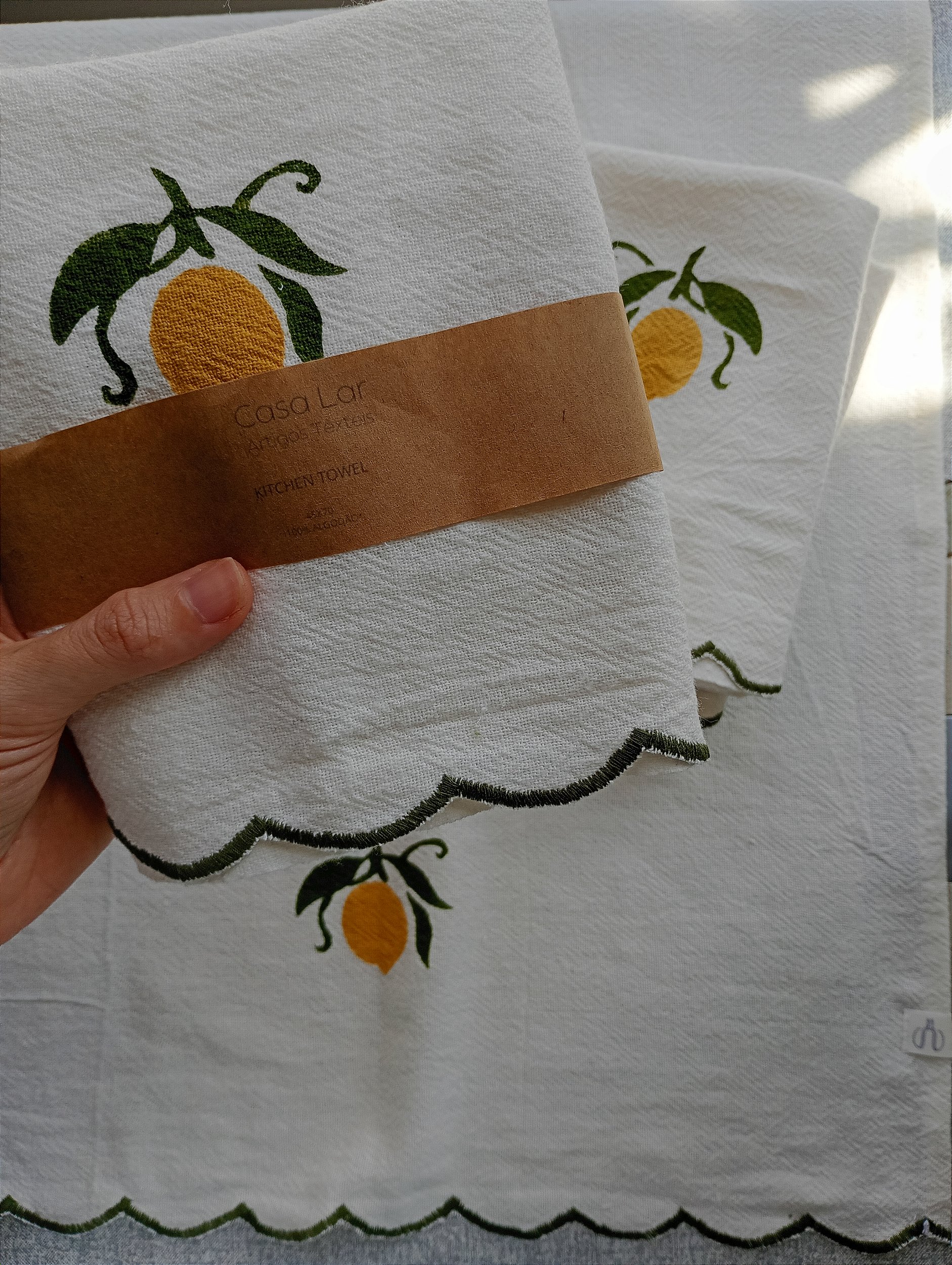 Os Panos de Prato Estampados da Casa Lar são cuidadosamente pintados à mão com padrões exclusivos desenvolvidos aqui!