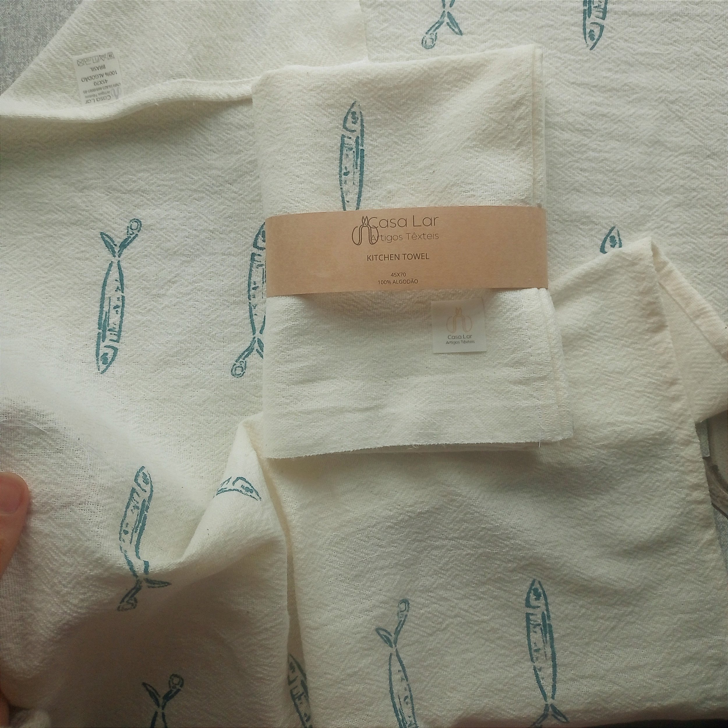 Os Panos de Prato Estampados da Casa Lar são cuidadosamente pintados à mão com padrões exclusivos desenvolvidos aqui!