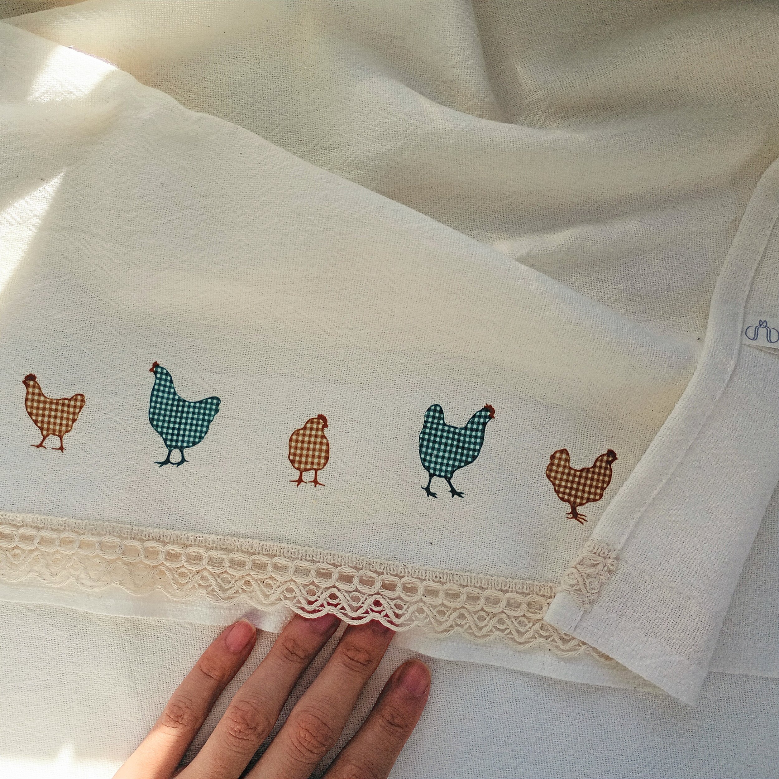 Pano de Prato 45x70 galinhas petróleo e marrom